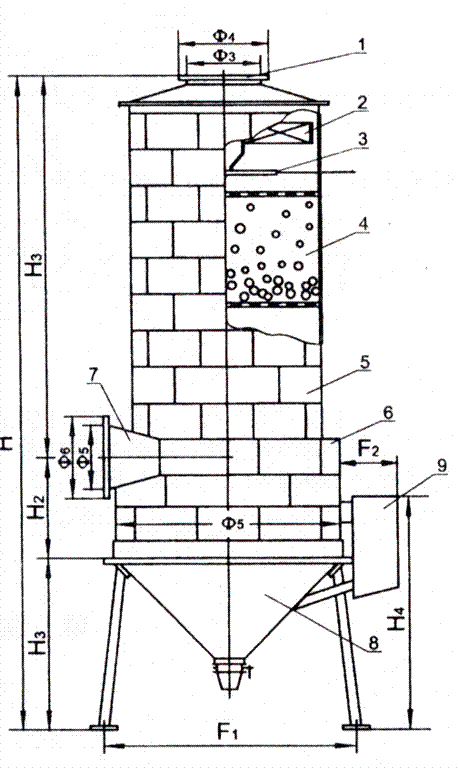該凈化器根據(jù)篩板、浮動體沖激、旋流、泡沫等多重原理,取其_的特性構(gòu)成,脫硫效率可高達(dá)90%以上。對2μm粒徑的粉塵除效率可達(dá)99%。其結(jié)構(gòu)可采用陶砌塊與金屬混合材質(zhì)的相結(jié)合,內(nèi)部篩板采用鎳鉻鋼,整個結(jié)構(gòu)材質(zhì)耐磨、耐腐、壽命長,結(jié)構(gòu)合理緊湊,占地面積小,經(jīng)濟(jì)實用,_可與布袋或電除塵媲美的新一代濕式除塵脫硫一體化的氣體凈化裝置。