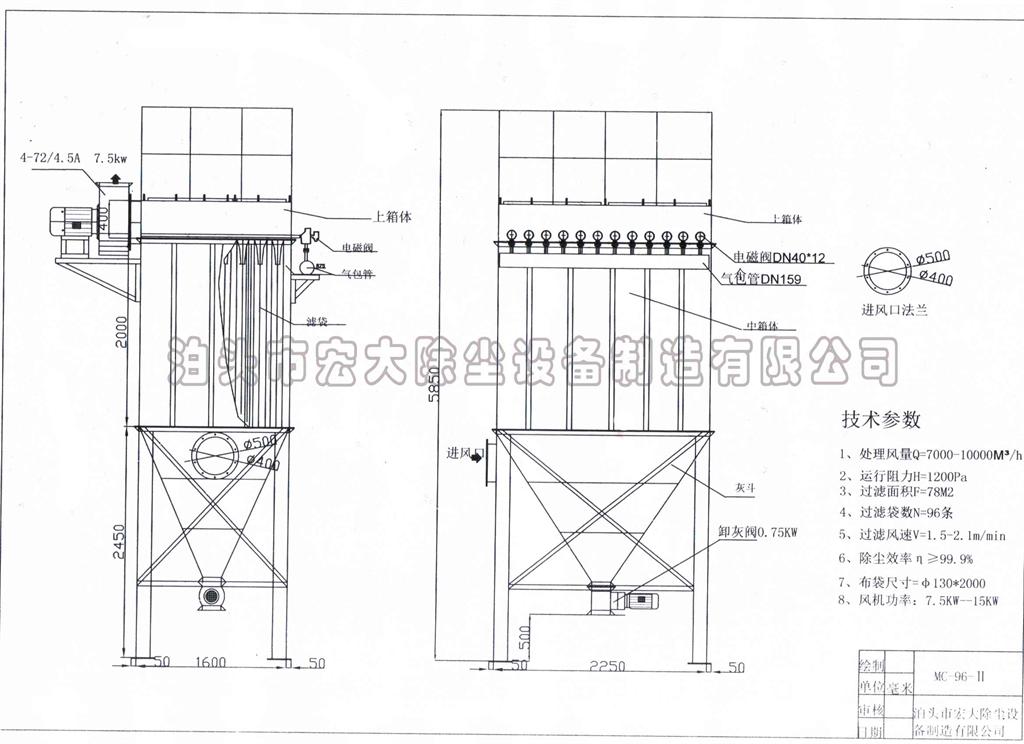 MC布袋除塵器|MC脈沖除塵器|MC脈沖袋式除塵器-MC-Ⅱ脈沖布袋除塵器技術(shù)性能-宏大除塵設(shè)備