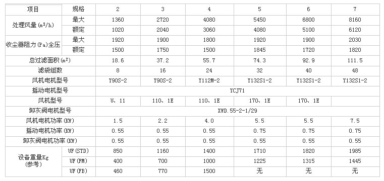 UF單機(jī)除塵器技術(shù)性能