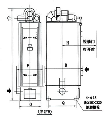 UF單機(jī)除塵器主要尺寸: